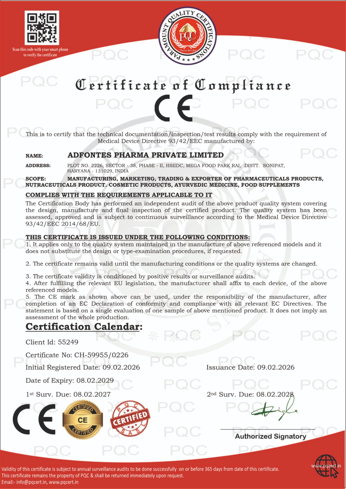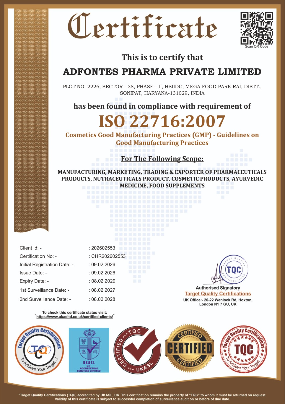 Adfontes Pharma Pvt Ltd was established in Vapi, Gujarat with a vision to deliver high-quality pharmaceutical and healthcare products.