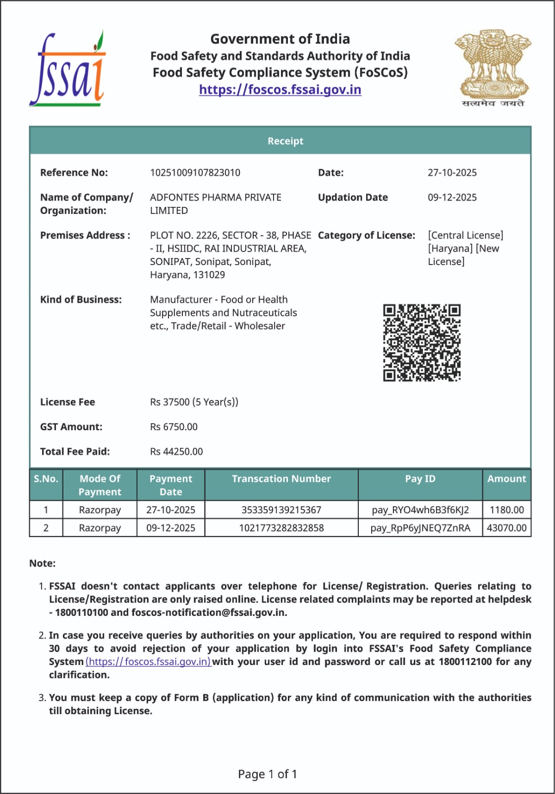 With more than 3000 combinations in tablets, capsules, syrups, sachets, soft-gels, protein powders, effervescent tablets, cosmetic and ayurvedic products, Adfontes has become a trusted manufacturing partner for major multinational companies supporting more than 100 quality formulations. The company has built a strong reputation through its commitment, consistency, and dedication to meeting the evolving needs of the healthcare market.